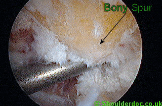 (Das erste Bild unten zeigt die offensichtliche Bildung eines Knochensporns, das zweite ist ein postoperatives Bild nach der Operation zur Entfernung des Knochensporns, der das Schulter-Impingement verursacht hat).