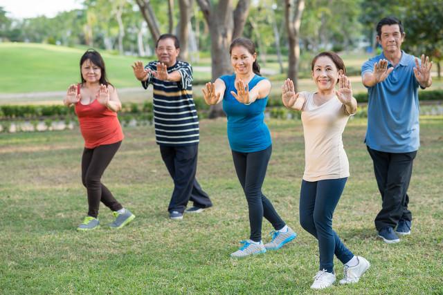 Den Ruhestand wie einen Job behandeln. Bewegung im Park wie einen Job zu behandeln, Bewegung im Park, Tai Chi im Park, Badminton im Park, Spazierengehen im Park wie eine Tätigkeit in einem Pflegeheim zu behandeln.