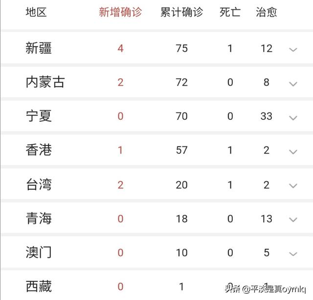 Hainan, Gansu, Jilin, Jilin, Ningxia, Qinghai, Tibet gestern, neue bestätigte Fälle von 0 Personen, von denen mehrere Provinzen und Städte für mehrere aufeinanderfolgende Tage der neuen bestätigten Fälle von 0, Tibet ist eine umfassende Null.