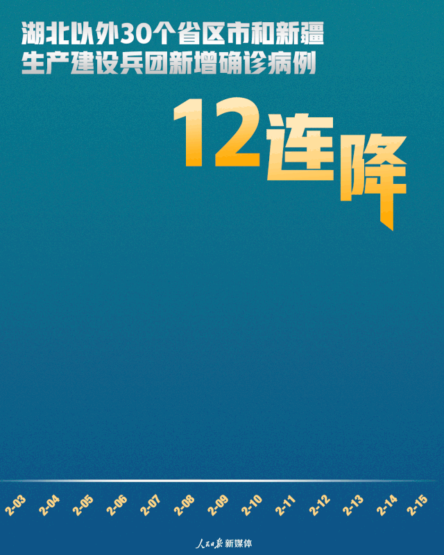 Bis zum 15. Februar hatten 30 Provinzen und Regionen außerhalb von Hubei und dem Produktions- und Baukorps von Xinjiang 12 aufeinander folgende Rückgänge bei den neu bestätigten Fällen zu verzeichnen, während die Zahl der bestätigten Fälle in fünf Provinzen und Gemeinden, nämlich Gansu, Ningxia, Qinghai, Tibet und Hainan, am 15. Februar auf Null zurückging.Nur ein neuer Fall kam in den sechs Provinzen Xinjiang, Jilin, Liaoning, Shanxi, Guizhou und Yunnan 15 hinzu.All diese guten Nachrichten deuten darauf hin, dass der Ausbruch in anderen Provinzen als Hubei wirksam bekämpft wurde.