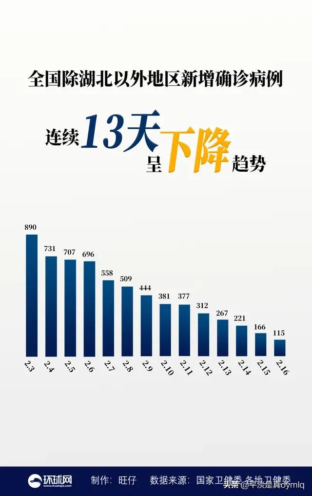 Die Tatsache, dass die Gesamtzahl der bestätigten neuen Fälle landesweit - mit Ausnahme von Hubei - 14 Mal in Folge zurückgegangen ist, ist eigentlich recht ermutigend und sagt uns zumindest, dass die neue koronare Lungenentzündung - mit Ausnahme von Hubei - unter Kontrolle ist und nicht weit davon entfernt ist, vollständig unter Kontrolle zu sein.