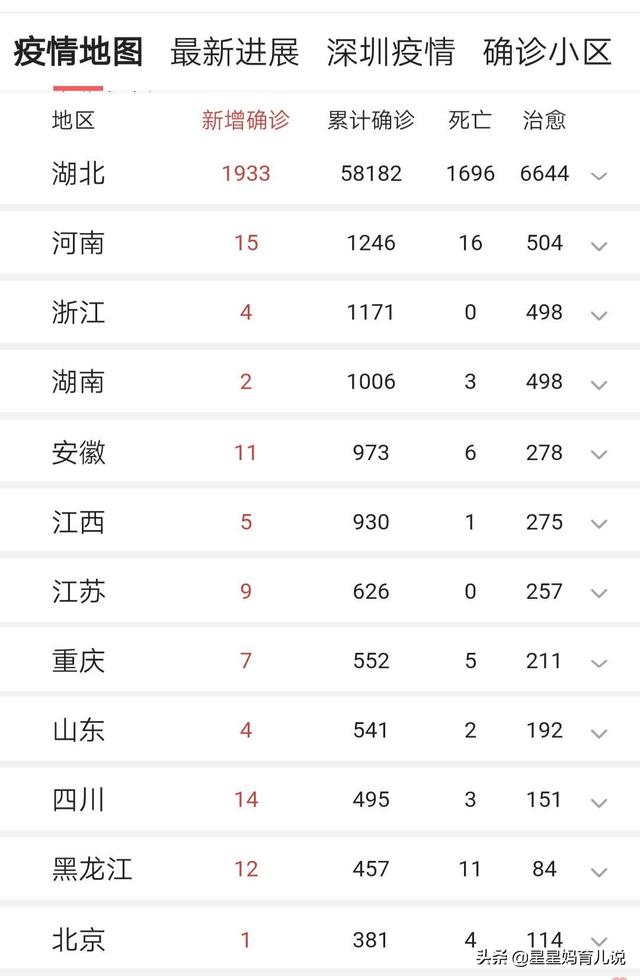 Siehe hier, die ganze Situation ist sehr klar, unser Land hat 34 Provinzverwaltungsregionen, die obige Tabelle zeigt, dass 30 Provinzen, autonomen Regionen und Gemeinden und der Xinjiang Production and Construction Corps wurde 12 aufeinander folgenden Rückgang, so dass jetzt die Epidemie ist die schwerste Orte in Hubei links, und die schwersten Orte in der Region Hubei und konzentriert sich in Wuhan, Kontrolle Wuhan wird vollständig die Kontrolle der Epidemie.Als Reaktion auf diesen Status quo, sagte der neu ernannte Sekretär des Wuhan Municipal Party Committee Wang Zhonglin, sich bemühen, drei Tage zu verbringen, kombiniert mit Big-Data-Tools, Patienten zu Hause Teppich, Netting Untersuchung, um herauszufinden, den Boden, um den "Boden" zu erreichen.Während der Dauer der Untersuchung zu implementieren 24-Stunden-geschlossenen Management, so dass "kein Haushalt, niemand", für diejenigen, die nicht kooperieren, entschlossen im Einklang mit dem Gesetz behandelt.