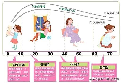 Wie aus der nachstehenden Tabelle hervorgeht, ist der Grundumsatz in den verschiedenen Altersgruppen unterschiedlich hoch: Von Geburt an steigt der Grundumsatz, egal ob es sich um einen Jungen oder ein Mädchen handelt, bis nach dem dreißigsten Lebensjahr, egal ob es sich um einen Mann oder eine Frau handelt, das Niveau des Grundumsatzes zu sinken beginnt, und je älter der Grundumsatz ist, desto niedriger ist der Wert.